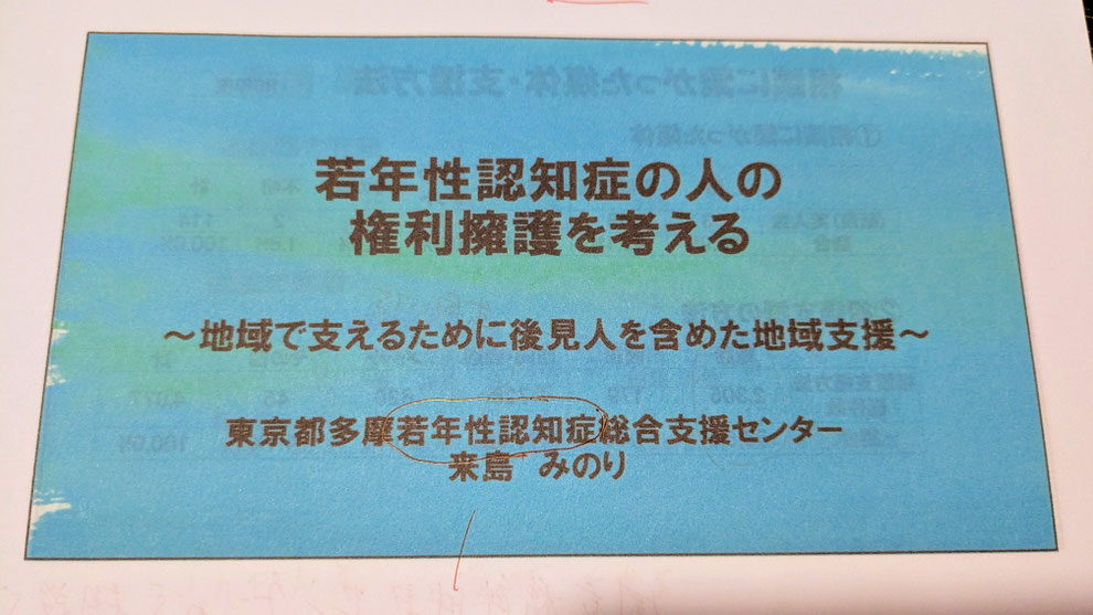 後見人関係者(弁護士、司法書士、社会福祉士、行政書士、社労士等)での、主として若年性認知症をテーマとした勉強会