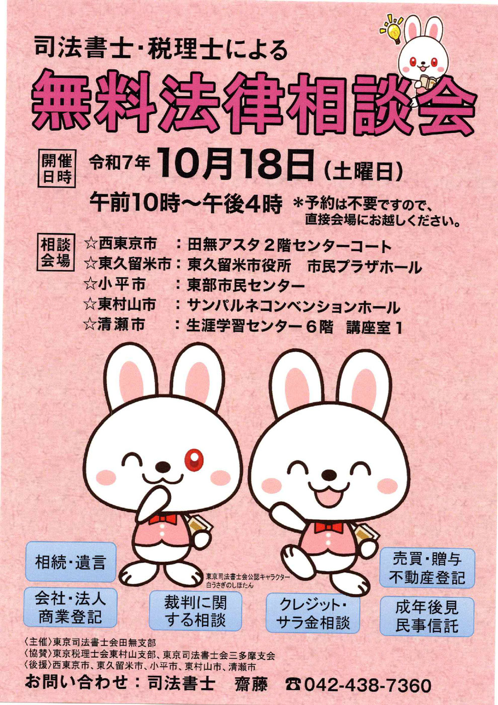東京司法書士会田無支部の司法書士が約50名参加予定